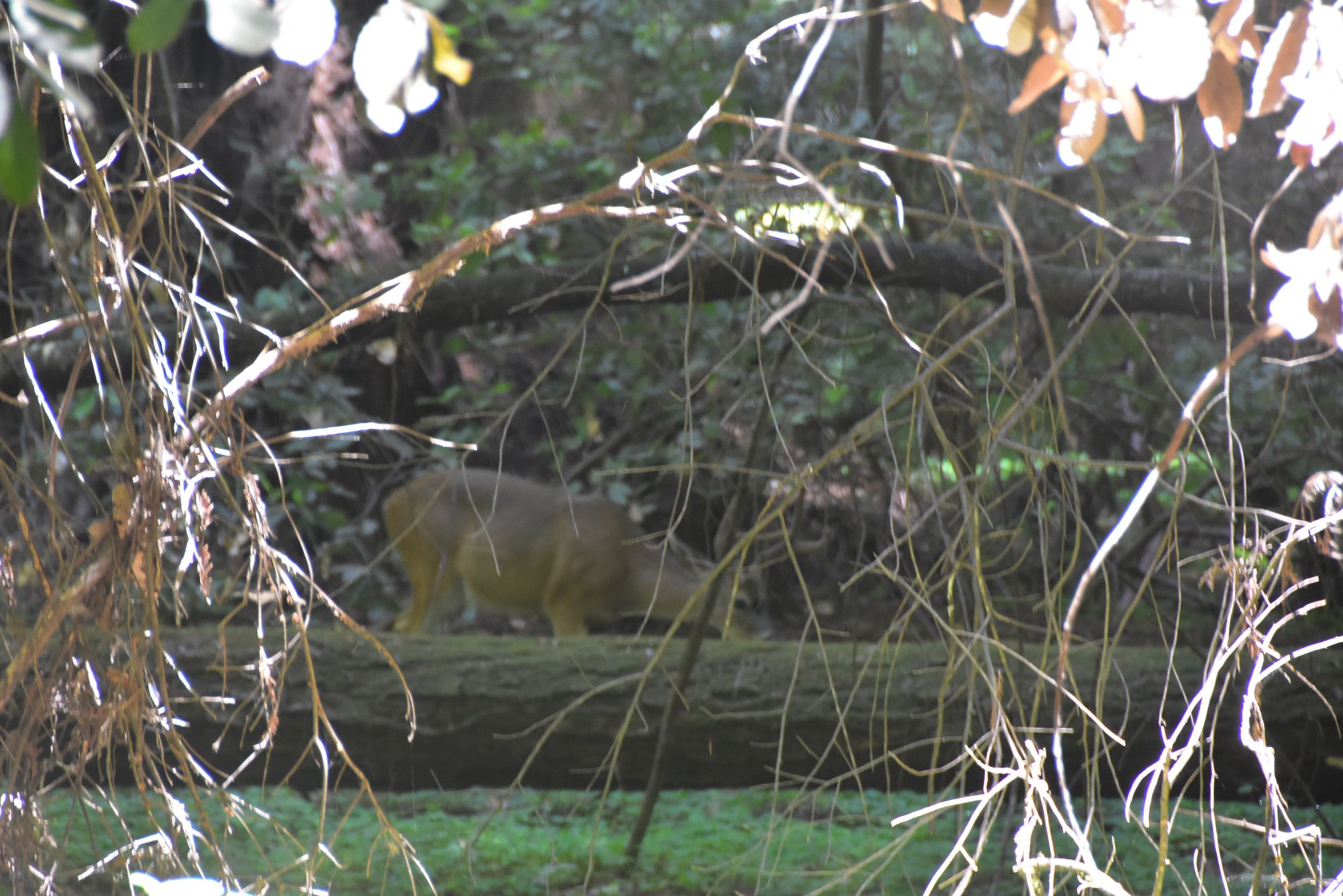 A camper with keen eyes spotted a deer in the forest, quite a distance from the trail. The campers all became hushed and watched it from afar as it looked for things to eat on the forest floor.